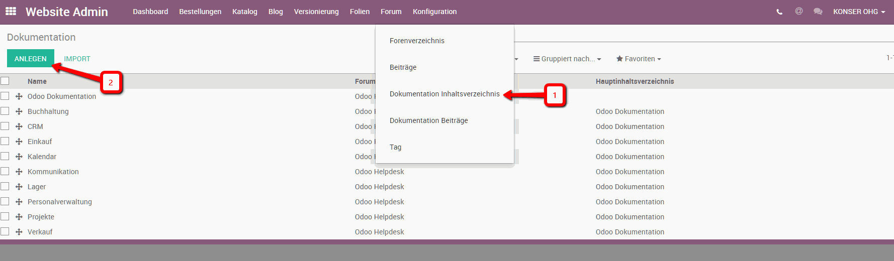 In diesem Bereich müssen Sie den Menüpunkt Forum und dann wiederum den Unterpunkt Dokumentation Inhaltsverzeichnis auswählen.